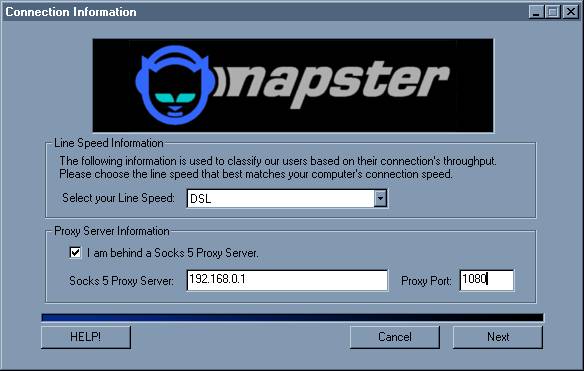 The first time you run Napster you will be asked to enter information