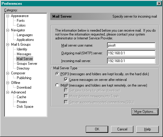 To get to the screen below, select Preferences off the Edit Menu in NetscapeCommunicator.
