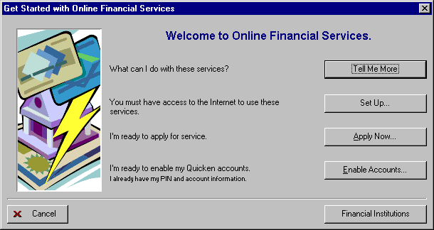 From the Online Menu, select Online Financial Services setup, which brings you to this screen: