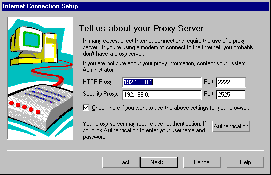 Select "I have a direct Internet connection" and click Next. The next couple screens will ask you which browser you intend to use with Quicken. Select the browser you intend to use. The following screen is where you enter your proxy information: